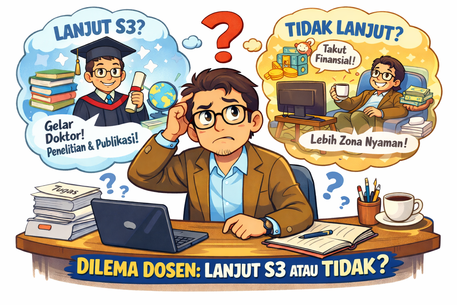 Pertanyaan ini sering muncul di kalangan dosen muda: Apakah perlu melanjutkan studi doktor (S3)? Sebagian orang menganggap S3 adalah kewajiban bagi dosen, sementara yang lain melihatnya sebagai pilihan yang bergantung pada kebutuhan dan tujuan pribadi. Jawaban paling jujur sebenarnya tidak sesederhana “ya” atau “tidak”. Ada beberapa hal yang perlu dipertimbangkan.