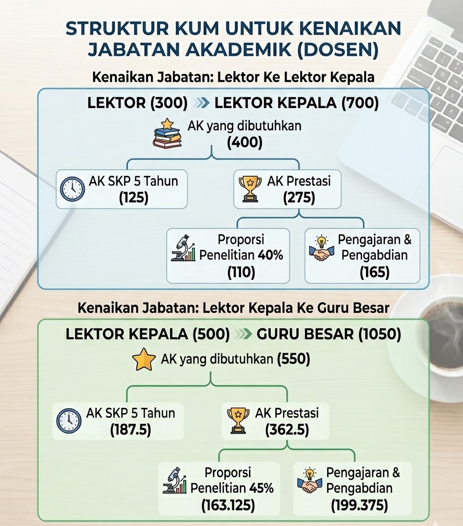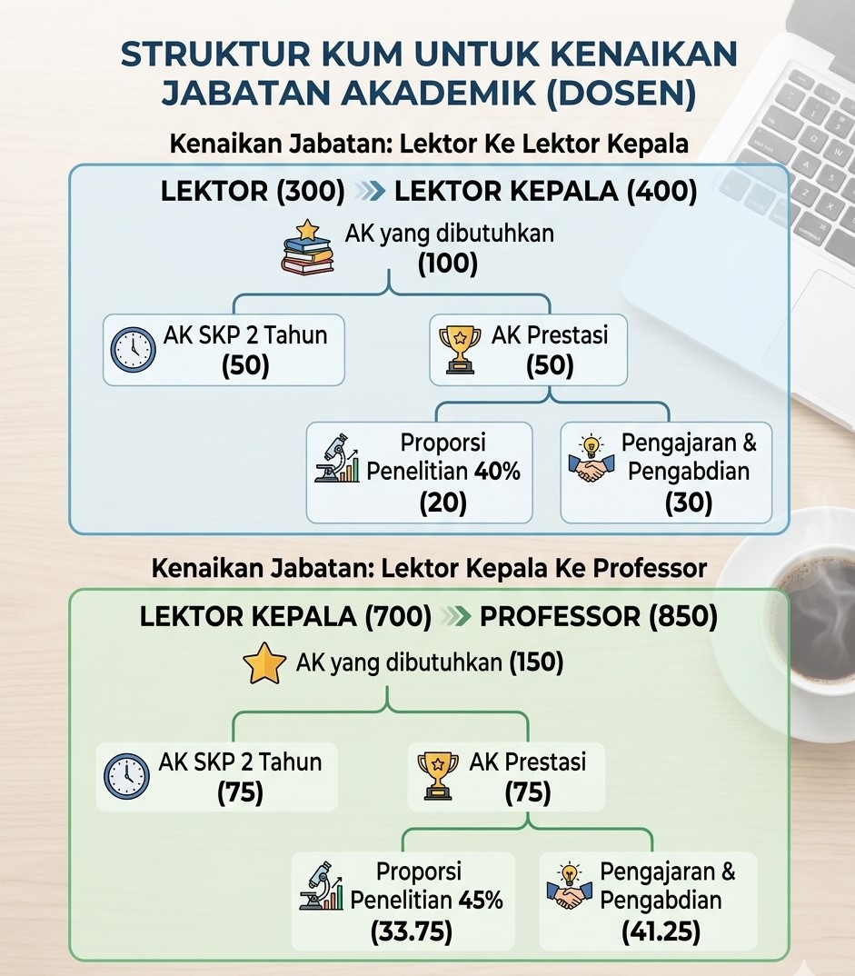 - Lektor (300) ke Lektor Kepala (400): AK yang dibutuhkan 100